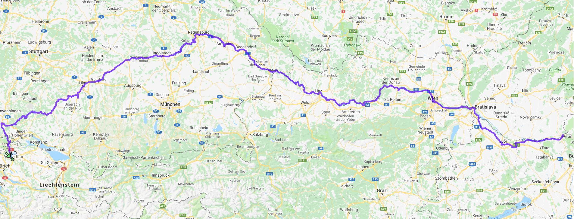 Winterthur-Donaueschingen-Ulm-Passau-Wien-Bratislava-Budapest 4. - 15. Juli 2015