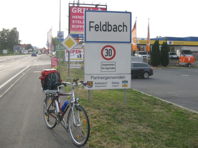 Die letzten 20km waren Landschaftlich nicht besonders interes-sant. Dafür sah ich von weitem mein Ziel "Wien". Nach weiteren 120km erreichte ich die Donau-Metropole. Nach insgesamt 515 Kilometern legte ich hier einen Rasttag ein. Da ich schon mehrere Male in Wien war kam ich ohne Stadtplan zurecht. Meine Tour führte mich weiter ins Burgenland wo ich meine Verwandten besuchte. Dank Navi das mich bestens durch die Stadt führte habe ich Wien nach 2 Stunden hinter mir gelassen. Nun ging es nicht mehr nur Abwärts. Über das Rosaliengebirge erreichte ich nach dem Tagesrekort von 140km Stadt-Schlaining. Nach einem weiteren Rasttag fuhr ich weiter durch das Südburgenland und erreichte nach die Steiermark. Gegen Abend kam ich nach weiteren 85km in Feldbach an. Ein freundlicher Bekanntenbesuch rundete meine Reise ab. Mein Endziel Graz wurde durch eine Zugsfahrt erreicht da es immer wieder regnete. Ich wollte kein Risiko nach dieser schönen Tour eingehen. Total bin ich ca 750km in 10 Tagen geradelt. Der Zug von Graz über München brachte mich nach Winterthur zurück.