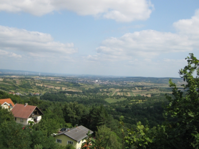 Die letzten 20km waren Landschaftlich nicht besonders interes-sant. Dafür sah ich von weitem mein Ziel "Wien". Nach weiteren 120km erreichte ich die Donau-Metropole. Nach insgesamt 515 Kilometern legte ich hier einen Rasttag ein. Da ich schon mehrere Male in Wien war kam ich ohne Stadtplan zurecht. Meine Tour führte mich weiter ins Burgenland wo ich meine Verwandten besuchte. Dank Navi das mich bestens durch die Stadt führte habe ich Wien nach 2 Stunden hinter mir gelassen. Nun ging es nicht mehr nur Abwärts. Über das Rosaliengebirge erreichte ich nach dem Tagesrekort von 140km Stadt-Schlaining. Nach einem weiteren Rasttag fuhr ich weiter durch das Südburgenland und erreichte nach die Steiermark. Gegen Abend kam ich nach weiteren 85km in Feldbach an. Ein freundlicher Bekanntenbesuch rundete meine Reise ab. Mein Endziel Graz wurde durch eine Zugsfahrt erreicht da es immer wieder regnete. Ich wollte kein Risiko nach dieser schönen Tour eingehen. Total bin ich ca 750km in 10 Tagen geradelt. Der Zug von Graz über München brachte mich nach Winterthur zurück.
